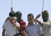 execution-4-tn.jpgيوم الخميس 29 تموز/يوليو 2010 اعدم نظام الملالي اللاإنساني سجيناً يدعى «يوسف.خ» شنقاً في سجن مدينة قزوين (غربي العاصمة طهران). كما اعدم ثلاثة سجناء آخرين شنقاً وهم «ع.أ» و«س.ز» و«س.م» يوم 24 تموز/يوليو الحالي في سجن «كارون» بمدينة الأهواز (جنوب غربي إيران) بتهمة تهريب المخدرات. وكان احد منهم قد اعدم بتهمة احتجاز 43 غراماً من الهروين فقط (وكالة انباء «فارس» الحكومية- يومي 24 و29 تموز/يوليو 2010).