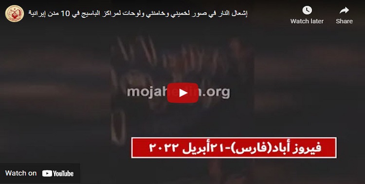 وفي 8 أبريل 2022، قام شباب الانتفاضة في طهران، وكرج، ومشهد، ورشت، وشيراز، وسميرم، والأهواز، وماهشهر، وبندر عباس، ورامهرمز، ودزفول، وزابل، وإيرانشهر، بإشعال النار في صور لخميني، وخامنئي، وقاسم سليماني ولوحات لمراكز الباسيج القمعية ومؤسسات النهب التابعة لخامنئي.