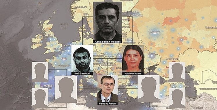 وكان الحكم بالسجن 20 عاما على أسد الله أسدي، الدبلوماسي الإرهابي الذي قد خطط لتفجير تجمع المقاومة الإيرانية، والحكم بالسجن 18 عاما لمرتزقة آخر، أمير سعدوني، كانت قد حُكمت في المحاكم البلجيكية.