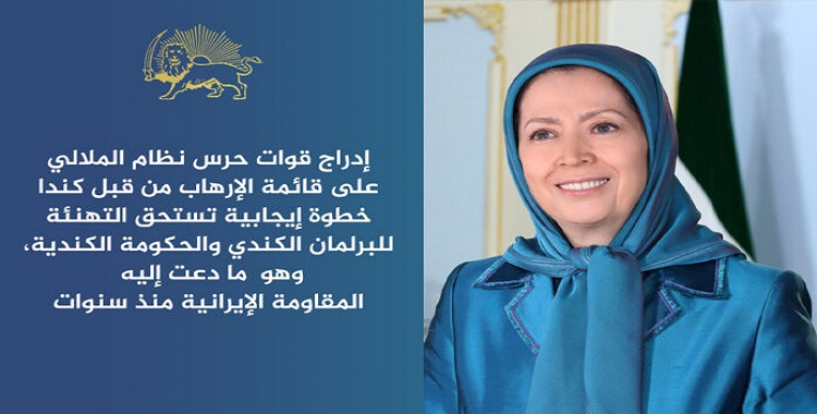مریم رجوی: إدراج قوات حرس نظام الملالي على قائمة الإرهاب من قبل كندا خطوة إيجابية تستحق التهنئة