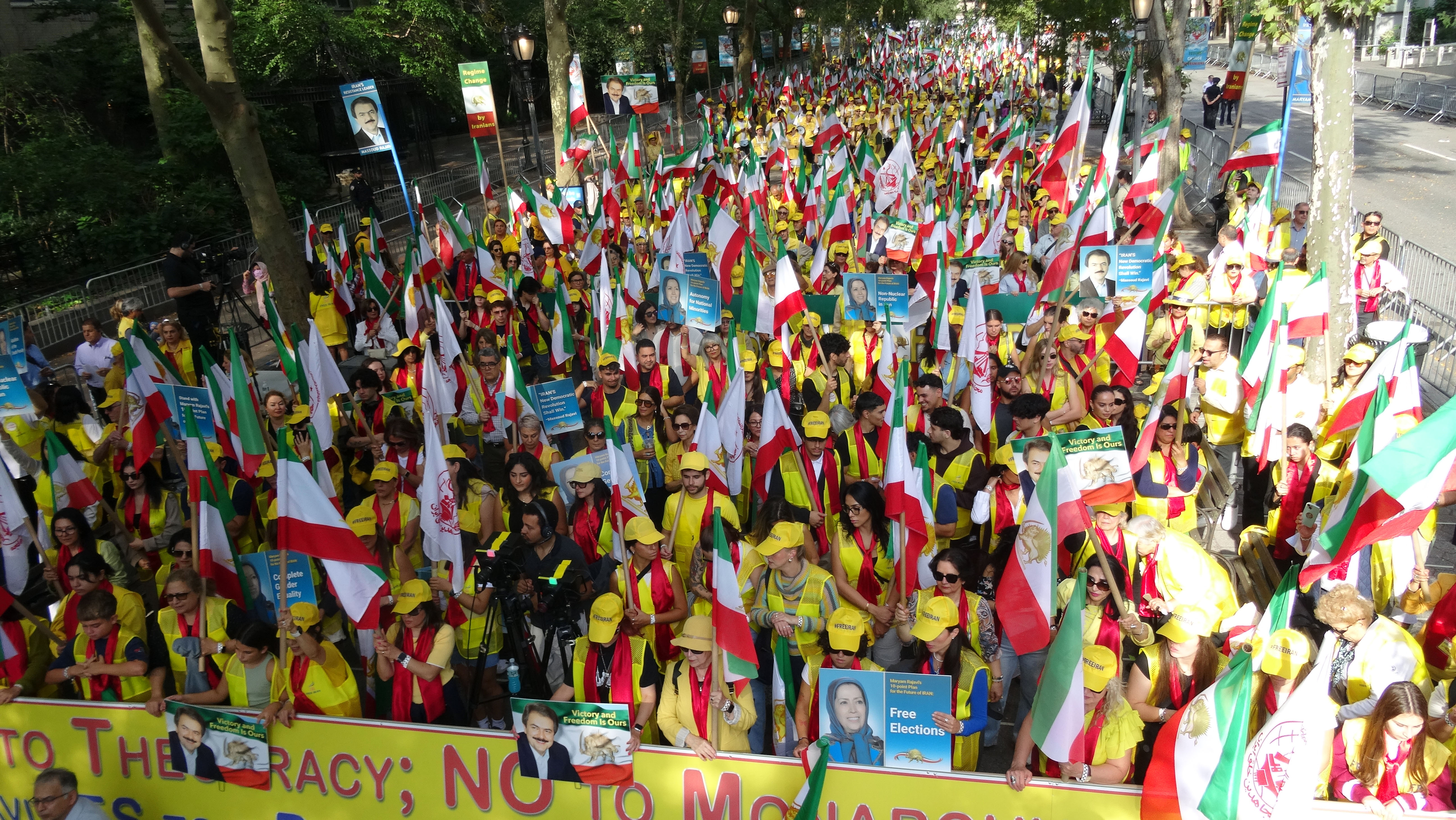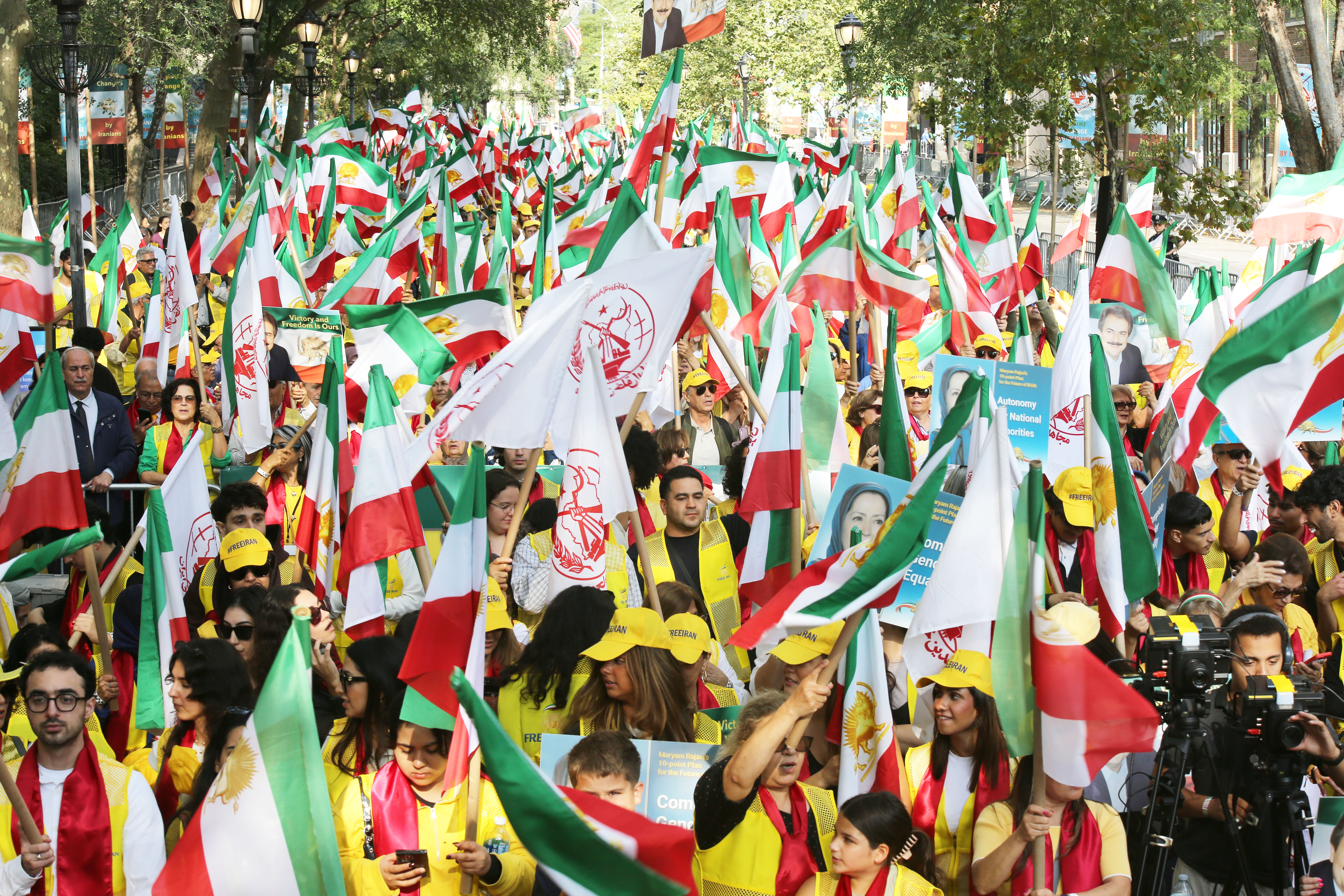 جانب من مظاهرة حاشدة لألاف الايرانيين ضد النظام الإيراني و دعما للسيدة مريم رجوي #2025FreeIranNYRally #OurChoiceMaryamRajavi #یک_گام_تا_قیام pic.twitter.com/pcqWVhJta0— منظمة مجاهدي خلق الإيرانية (@Mojahedinar) September 23, 2025