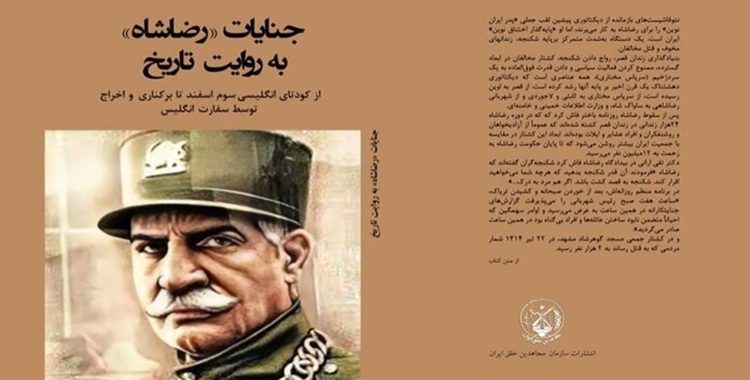 صدر عن منشورات منظمة مجاهدي خلق الإيرانية كتاب بعنوان «رضا شاه برواية التاريخ» في 261 صفحة، يتناول بالتفصيل الجرائم والانتهاكات التي ارتكبها رضا شاه بحق الشعب الإيراني. ويسرد الكتاب مسار صعوده إلى الحكم بدعم مباشر من بريطانيا، ثم سقوطه لاحقًا بقرار من السفارة البريطانية في طهران. وفيما يلي أبرز المحاور التي تناولها الكتاب: