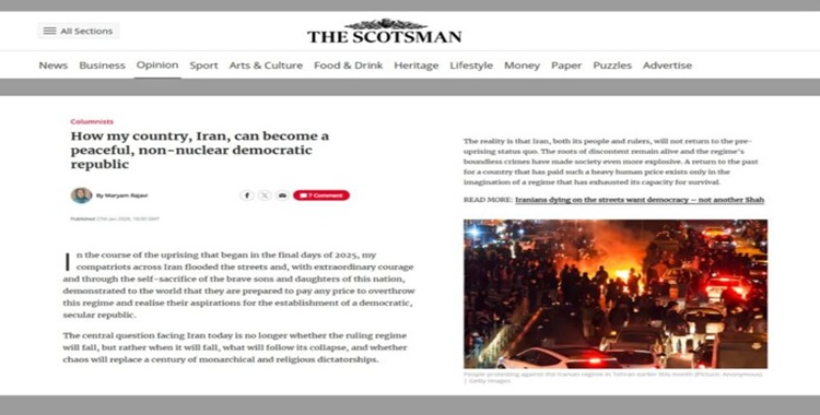 في افتتاحيتها، دعت صحيفة “ذا سكوتسمان“البريطانية ، الحكومة البريطانية إلى الوقوف بحزم مع الحركة المؤيدة للديمقراطية في إيران، مشددة على أن الخطوة الأولى والضرورية هي تصنيف “حرس النظام الإيراني“ كمنظمة إرهابية، خاصة مع ارتفاع حصيلة ضحايا القمع الوحشي.
