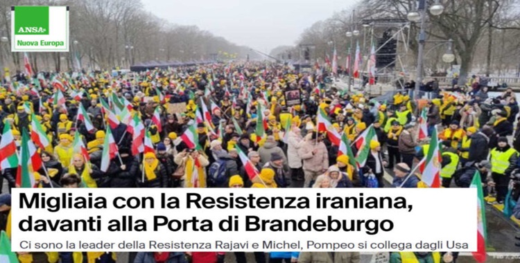 أفادت وكالة الأنباء الإيطالية (ANSA) بأن آلاف الإيرانيين احتشدوا في مظاهرة حاشدة أمام بوابة براندنبورغ التاريخية في العاصمة الألمانية برلين، للمطالبة بحرية شعبهم ودعم المقاومة الإيرانية.