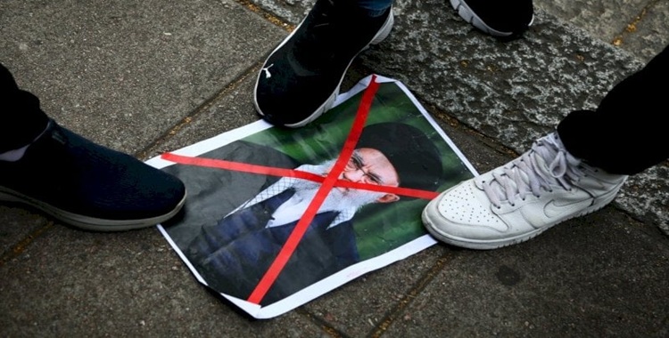 صورة علی خامنئي تدهس تحت اقدام المحتجین في ایران-