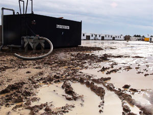 ويأتي هذا الحادث في وقت خصص السكان ومنذ شروع تساقط الأمطار وطفح المياه جميع صهاريجهم القابلة للاستخدام لتفريغ المخيم من المياه كما حاولوا سحب المياه بواسطة الخراطيم من أقسام في المخيم أيضا الا أن القوات العراقية منعت الليلة الماضية خروج صهاريج مياه المجاري وسحب المياه الى خارج المخيم بواسطة الخراطيم واشترطوا ذلك بموافقة صادق محمد كاظم. وبذلك يتدهور الوضع باستمرار حيث يمكن في كل لحظة تتسرب مياه المجاري الى داخل بيئة المخيم فتلوثها.