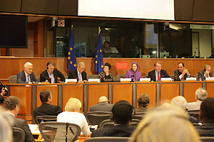وتكلم في هذه الجلسة التي ترأسها النائب استراون استيفنسون عدد من كبار النواب في البرلمان الاوربي بينهم آلخو فيدال كوادراس نائب رئيس البرلمان الاوربي واستفان هيوز أول نائب رئيس لمجموعة الاشتراكيين والديمقراطيين و جيم هيغينز عضو مكتب البرلمان و السيدة ريتا زوسموت الرئيس السابق للبرلمان الألماني. وأكد المشاركون في الجلسة على النقاط التالية: