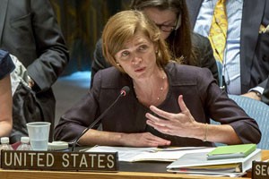 السفيرة الاميركية لدى الامم المتحدة سامنتا باور في مجلس الامن في 25 ايلول-سبتمبر 2016
