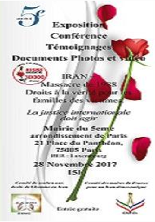 بناء على مبادرة من لجنة دعم حقوق الإنسان في إيران (CSDHI) ولجنة رؤساء بلديات فرنسا من أجل إيران الديمقراطية، سيعقد مؤتمر الثلاثاء، 28 نوفمبر 2017 بقاعة البلدية في الدائرة الخامسة من باريس، حول مخاوف فرنسا والمجتمع الدولي حول سياسات الدكتاتورية الدينية الحاكمة في إيران.