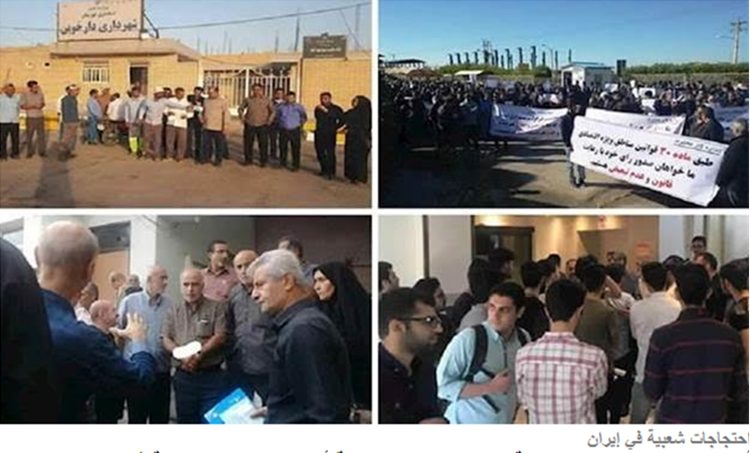 أوردت التقارير الواردة لمنظمة مجاهدي خلق أن الإضرابات والاحتجاجات من قبل مختلف الشرائح للمواطنين في المدن الإيرانية لا تزال متواصلة. فيمايلي ملخص من بعض الاحتجاجات والإضرابات التي جرت فقط يوم السبت 29سبتمبر: