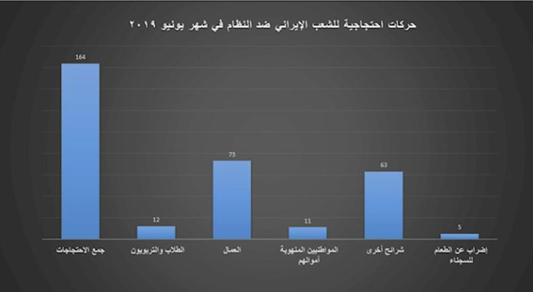 أكثر من 164 حركة احتجاجية في 54 من المدن الإيرانية ضد نظام الملالي في شهر يونيو2019